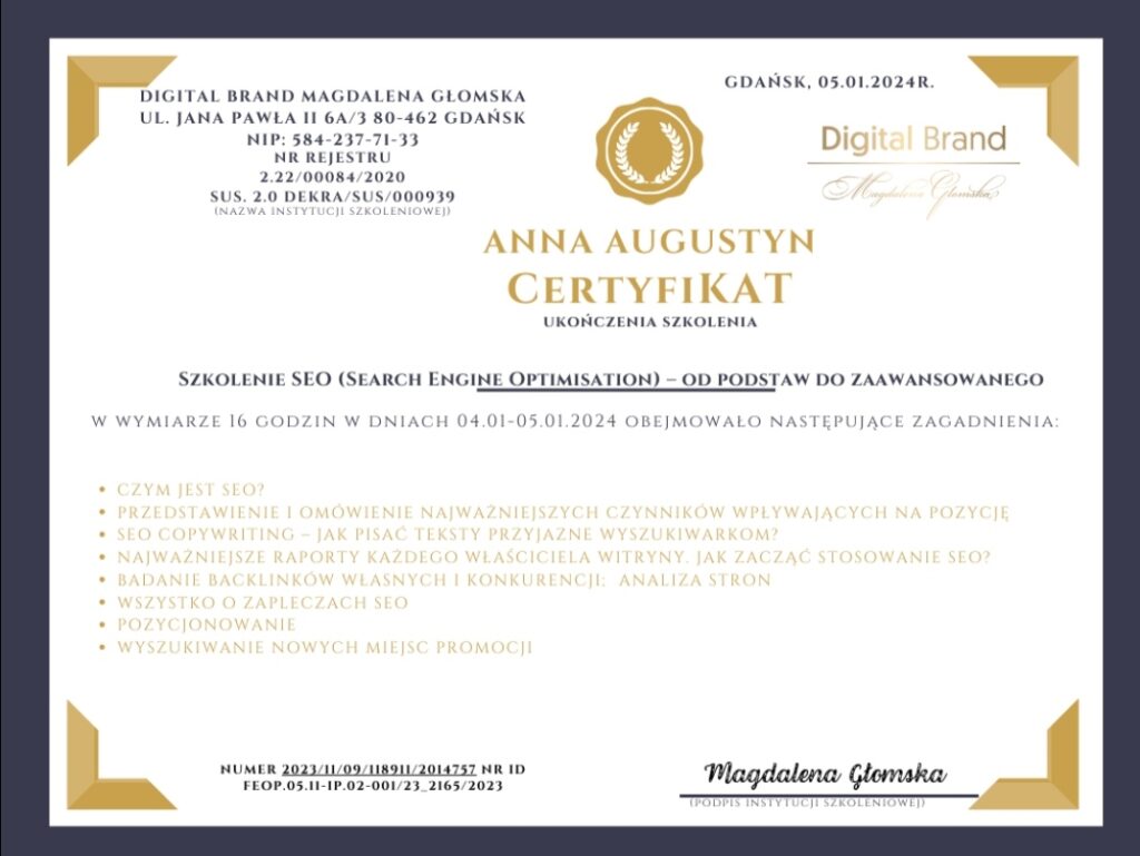 Stale podnosi swoje kwalifikacje na licznych kursach i szkoleniach.