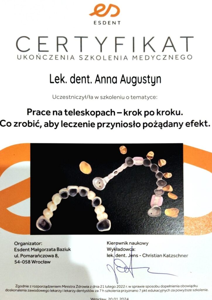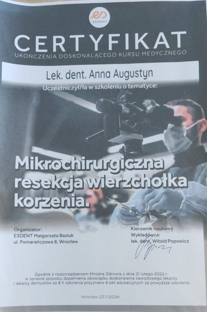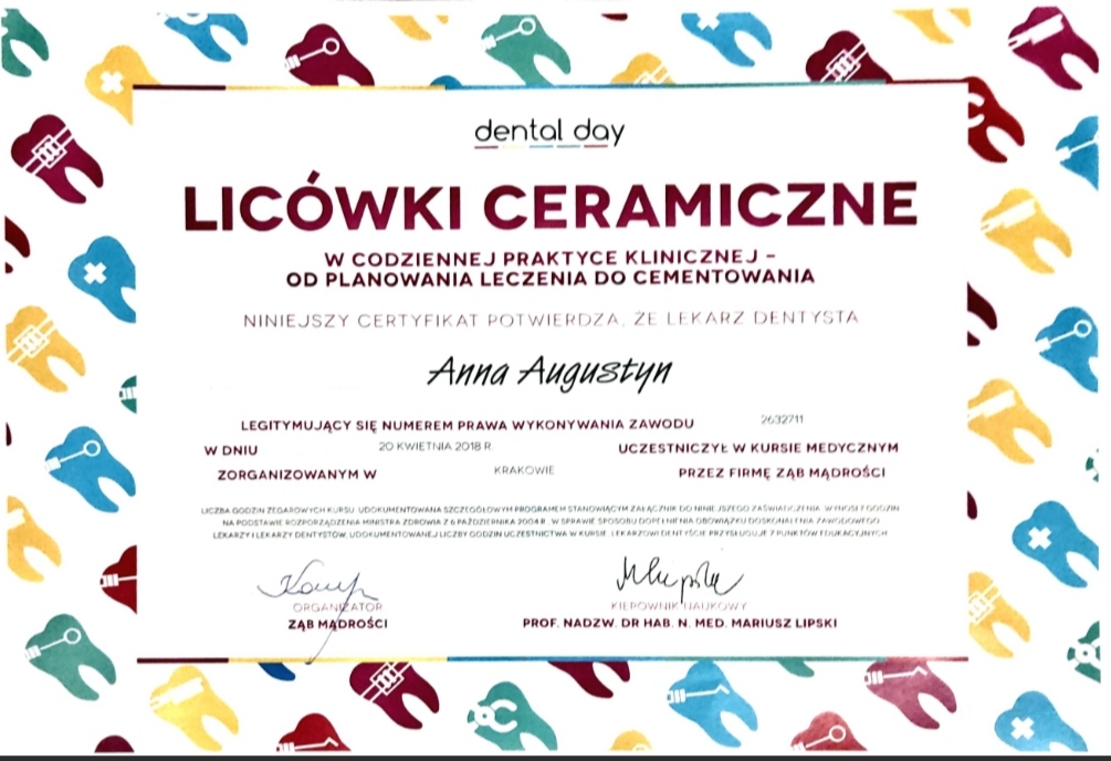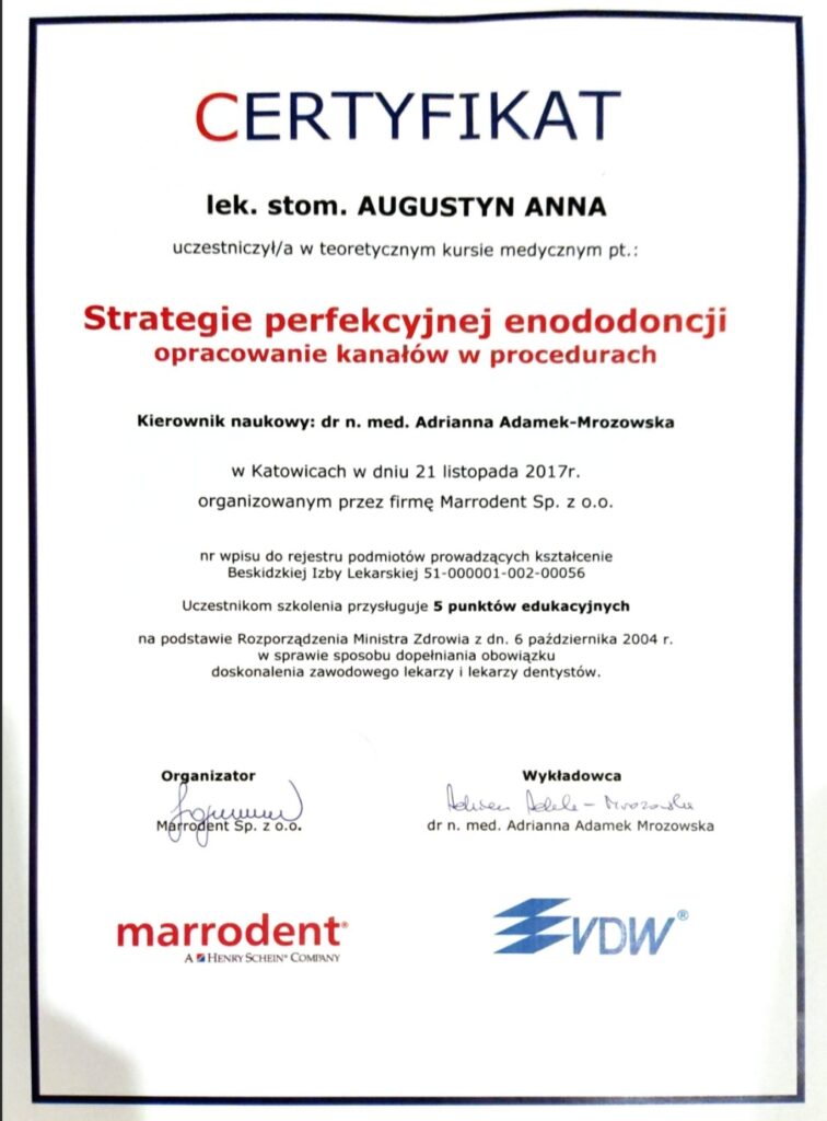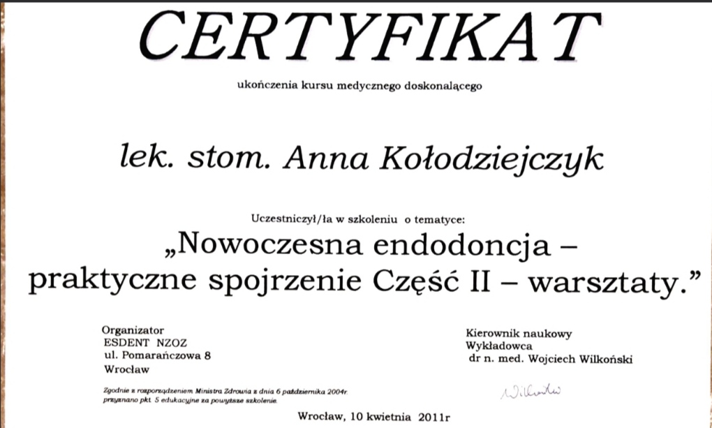 Stale podnosi swoje kwalifikacje na licznych szkoleniach szczególnie z zakresu endodoncji mikroskopowej nawet najtrudniejszych przypadków, stomatologii estetycznej oraz protetyki.