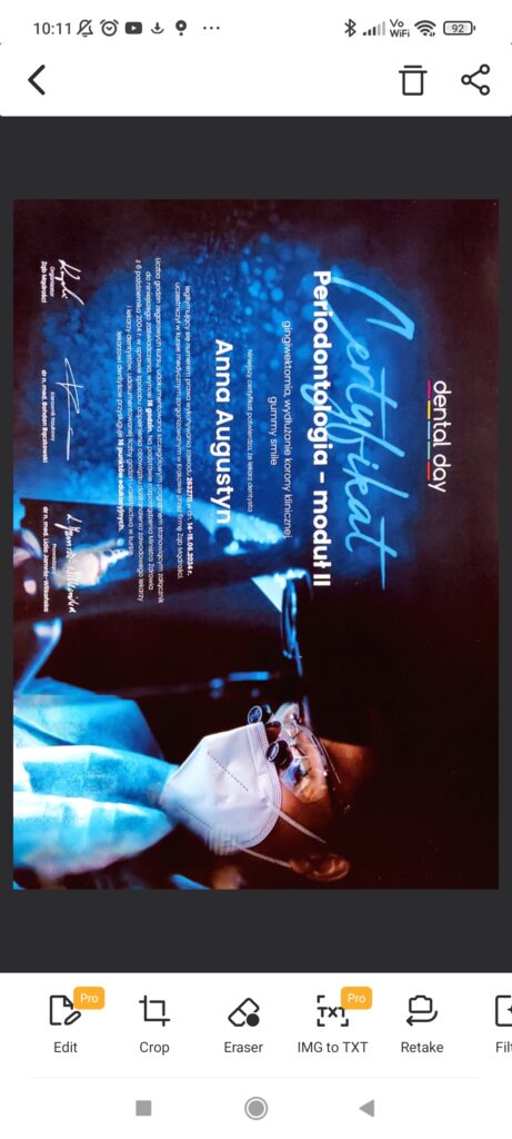 Jest specjalistą ortodoncji, PES – egzamin specjalizacyjny zdała w 2025 roku.